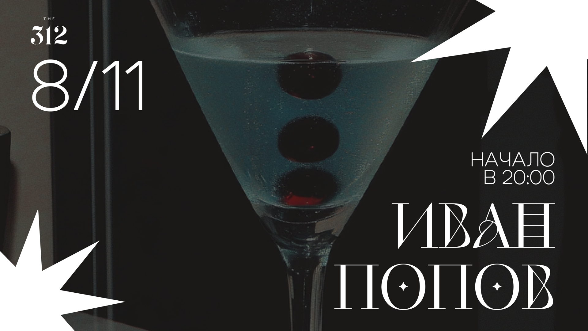 Акустический вечер с Иваном Поповым в The 312 В этот день гастробар The 312 наполнится мягким тембром и искренней подачей Ивана Попова — музыканта, чьё исполнение заставляет забыть о времени. Тёплый акустический сет, камерная атмосфера, авторские песни и любимые рок- и поп-композиции в необычных аранжировках — всё это создаст ощущение, что музыка звучит только для вас. Приходите, чтобы пережить вечер, в котором каждая нота важна.