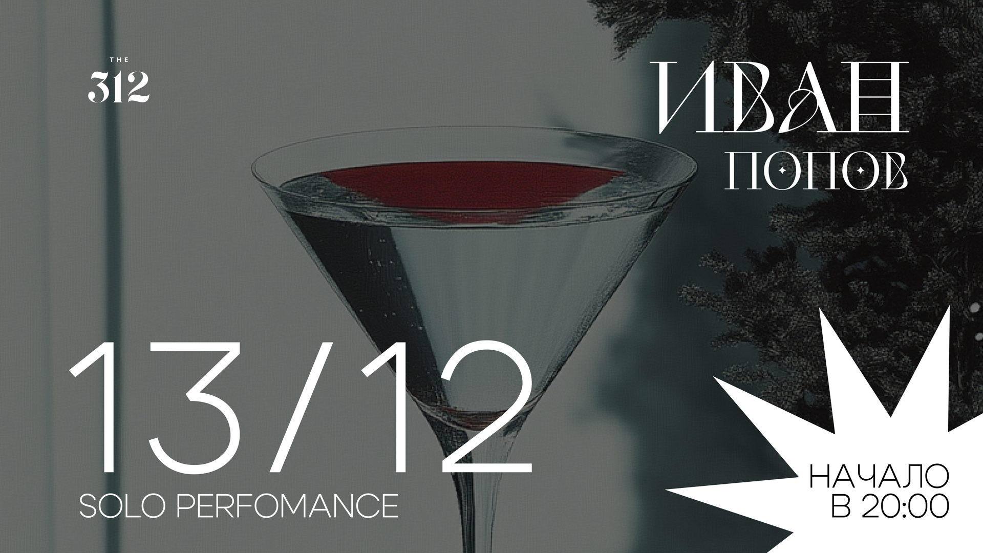 Акустический вечер с Иваном Поповым в The 312 В этот день гастробар The 312 наполнится мягким тембром и искренней подачей Ивана Попова — музыканта, чьё исполнение заставляет забыть о времени. Тёплый акустический сет, камерная атмосфера, авторские песни и любимые рок- и поп-композиции в необычных аранжировках — всё это создаст ощущение, что музыка звучит только для вас. Приходите, чтобы пережить вечер, в котором каждая нота важна. Начало в 20:00.