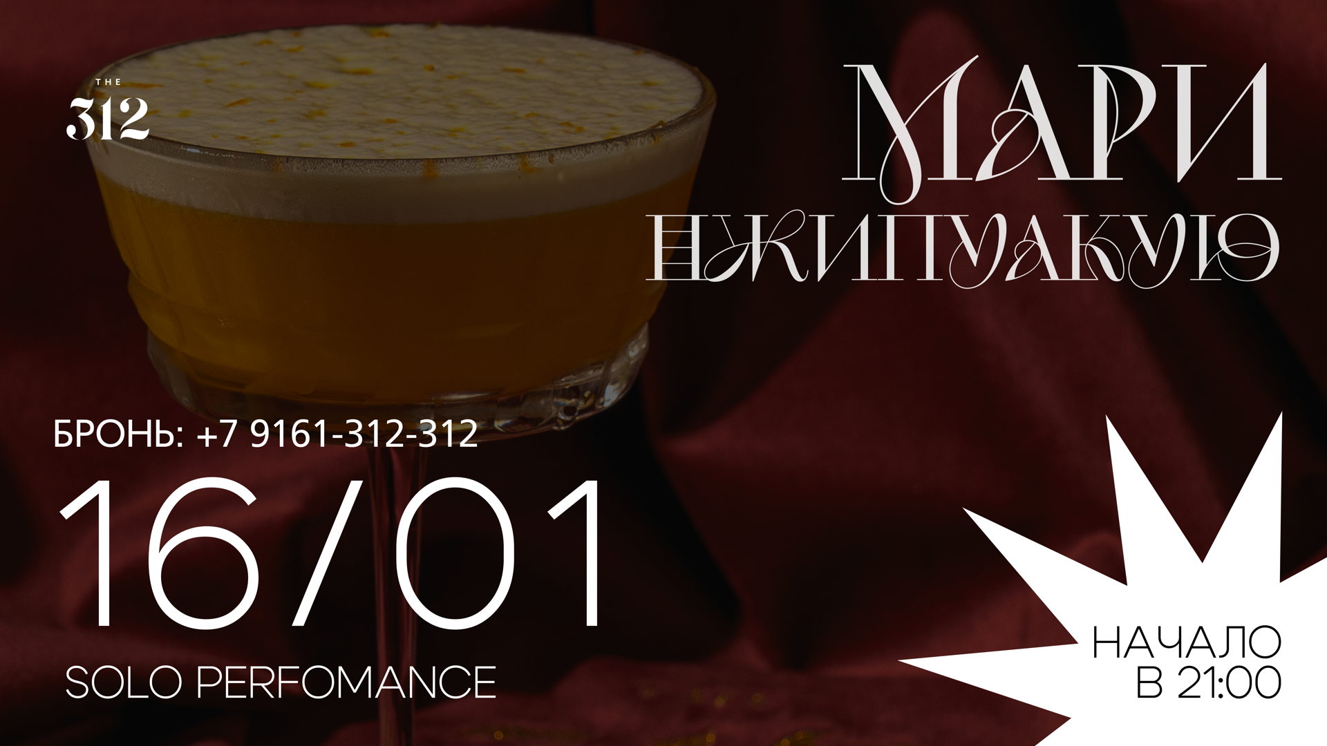 В этот вечер гастробар The 312 наполнится бархатным голосом и неповторимой подачей Мари Нжипуакую. Её песни — это откровенные истории о чувствах, силе духа и красоте момента, которые находят отклик в каждом сердце.